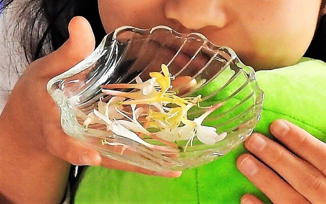 スイカズラ・ハニーサックルは花を口にくわえて甘い蜜を吸ったことから。